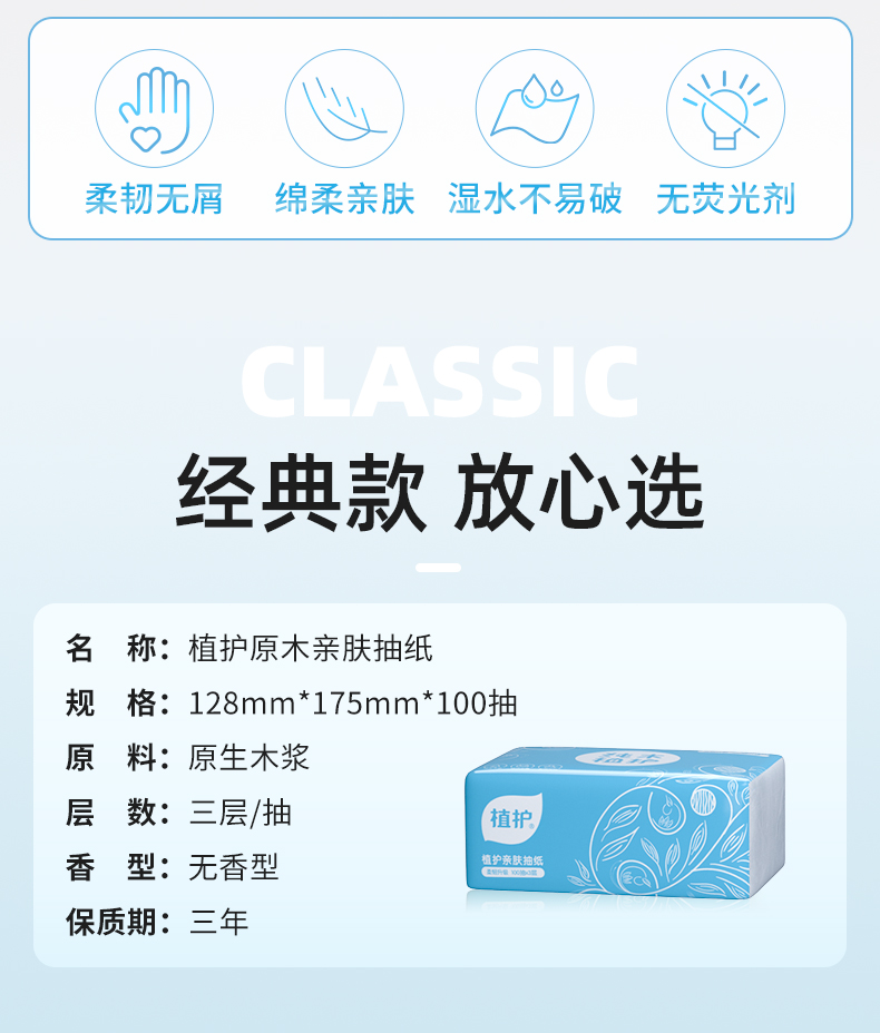 植护 抽纸 经典蓝抽3层100抽软抽纸巾*24包 中号整箱销售 母婴可用 餐巾纸面巾纸卫生纸
