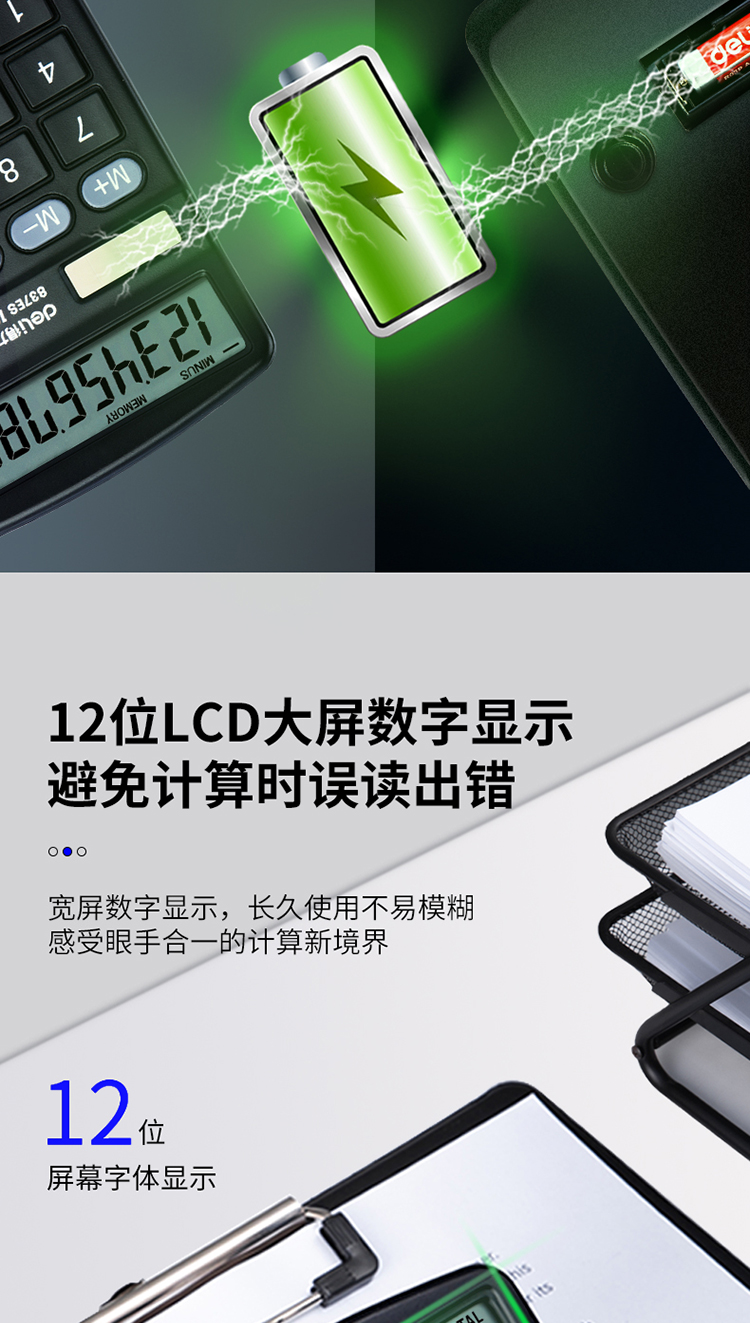 得力 deli 双电源桌面办公计算器 12位大屏幕桌面计算机 办公文具用品 837ES
