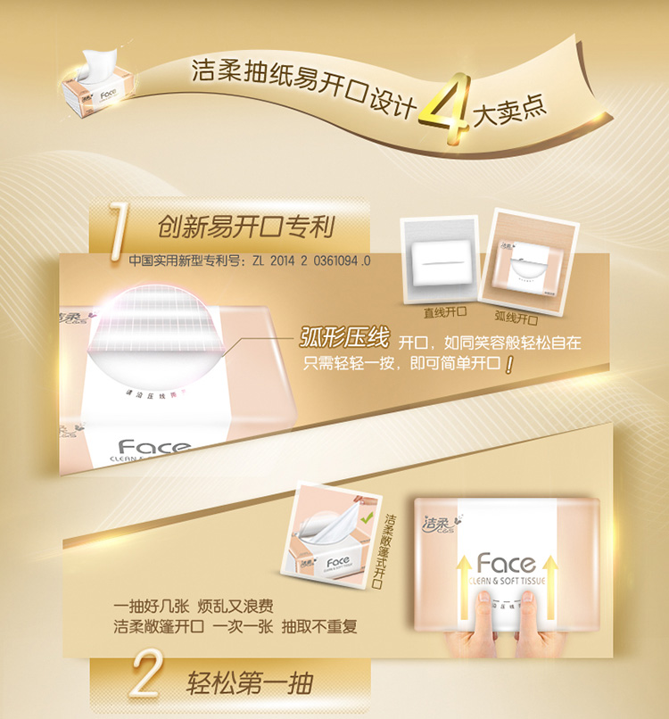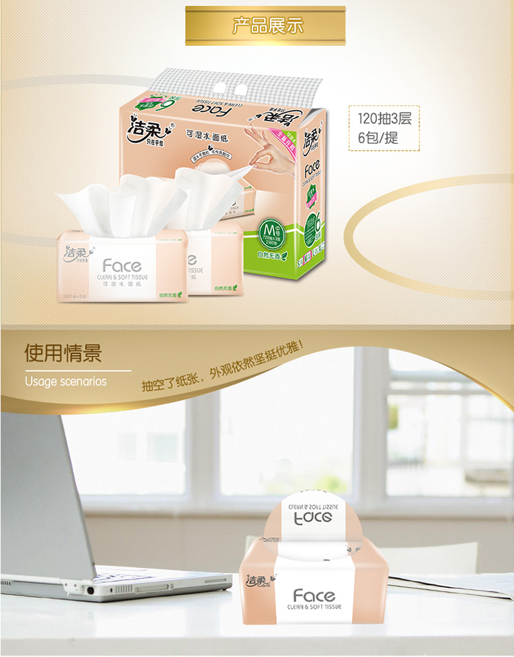 洁柔 C&S 抽纸 粉Face 柔韧3层120抽面巾纸*6包 无香 M号软抽 婴儿纸巾 面子系列 干湿两用 新老包装交替发货